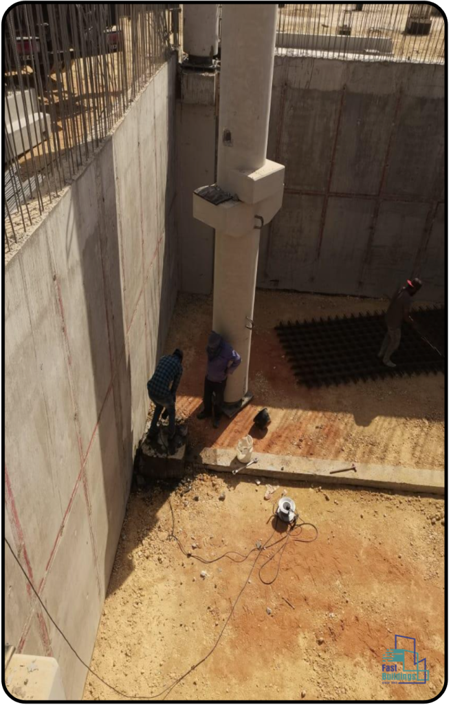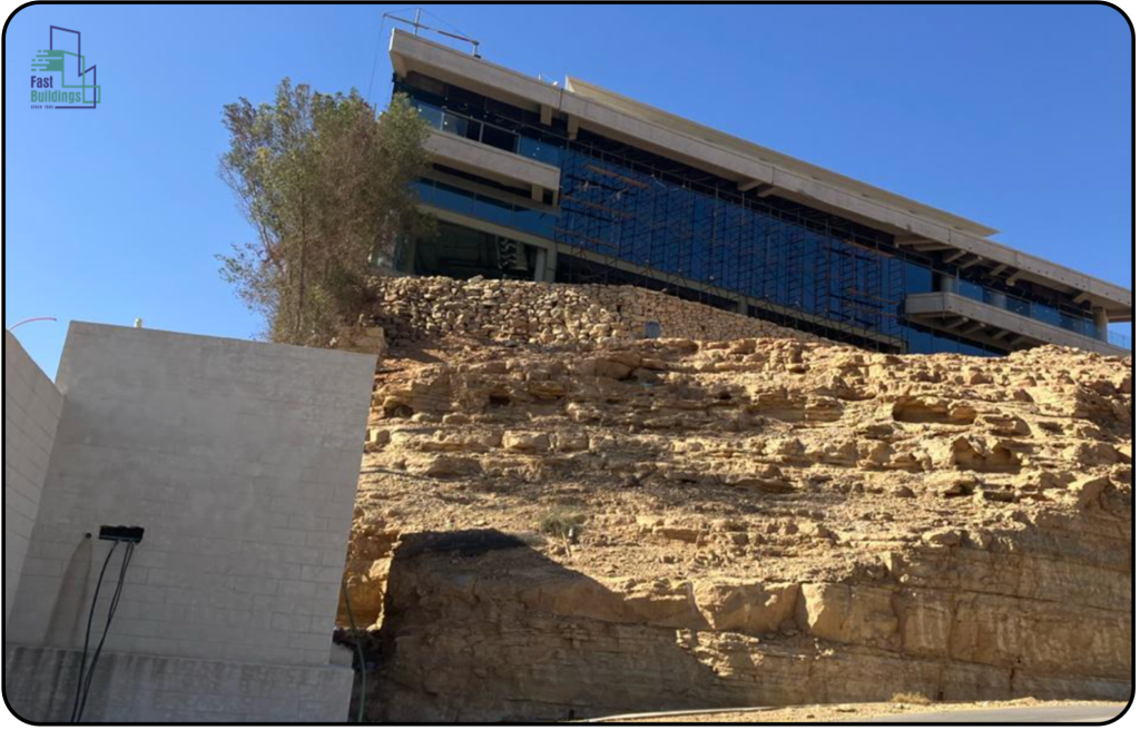 - تنفيذ الهيكل الإنشائي الكامل للمبنى